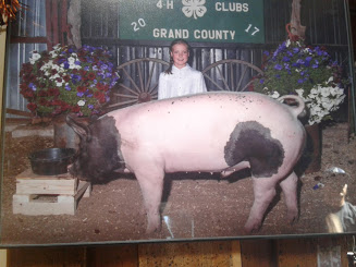 | This is a picture of "Hotdog" and its H4 owner and young future farmer. |