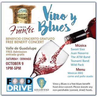 Vino y Blues in Valle de Guadalupe. If you love wine, blues and good ol' Mexican BBQ. Join us SUNDAY, OCT 9, 2016 at Vinos Fuentes for an afternoon of fun, music, food and helping other.