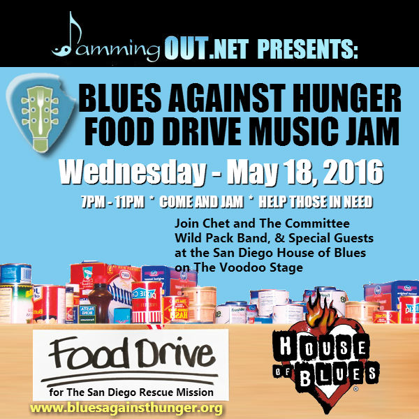 May 18, 2016 - The Blues Against Hunger at the House of Blues in San Diego was a great success. We collected two 50 Gallon barrels of food for folks at San Diego Rescue Mission. The event featured a performance by Chet Cannon and the Committee, the Wild Pack band and an all-star blues jam.