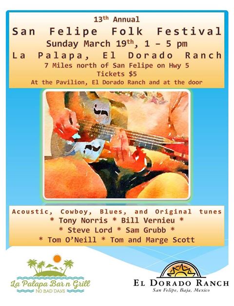 This is now 13 years of folk, country, cowboy and bluegrass has been coming to San Felipe thanks to Tony, and all the great musicians. Please join then this year at the La Palapa Bar in El Dorado Ranch on Sunday, March 19, from 1PM-5PM, the event is only $5 and is fun for all.